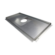Galvanised steel plate register plate kit ideal for neatly sealing off the top of your stove enclosure. The plate comes with supporting brackets to make fitting easier. It is punched with a 5-inch central hole. The four supporting brackets should be cut to the length and width of the base of your chimney stack. Drill a number of holes in the brackets. Now screw them into the brickwork. Cut the Register Plate to the correct size, taking care that the pipe hole lies vertically above the Black Stove Pipe. Drop the Register Plate onto the supporting brackets. Now seal any gaps between the brickwork and the brackets / plate using Fire Cement or High Temperature Sealant. For 150mm diameter installations simply remove the centre cover ring by unscrewing the two retaining screws.