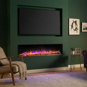 The Celestial 50" features 3 exceptional flame effects; orange, blue and mixed orange blue and a choice of 12 fuel-bed colours, thus allowing you to fully illuminate the unit and create a relaxing, authentic experience, only added to by the decorative fuel bed composed of Black crystals and realistic artificial logs.