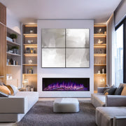 This flagship model features a significantly taller flame picture and a deeper, more realistic fuel bed than previous Expanse fires, creating a striking sense of depth and movement that truly transforms a media wall into a focal point. Finished with real charred log fuel effects, the Expanse 50" delivers a premium, authentic look that rivals the appearance of a real fire — without the mess or maintenance.